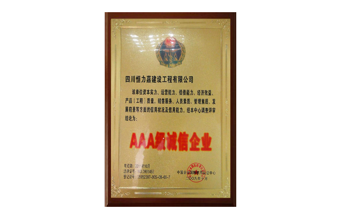 2009年10月AAA級(jí)誠(chéng)信企業(yè)