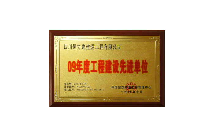 2009年10月工程建設(shè)先進(jìn)單位...