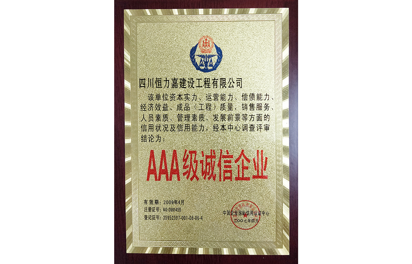 2007年4月AAA級(jí)誠(chéng)信企業(yè)